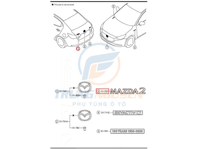 Chữ "Mazda 2" dán sau xe Mazda 2 - DHS251721